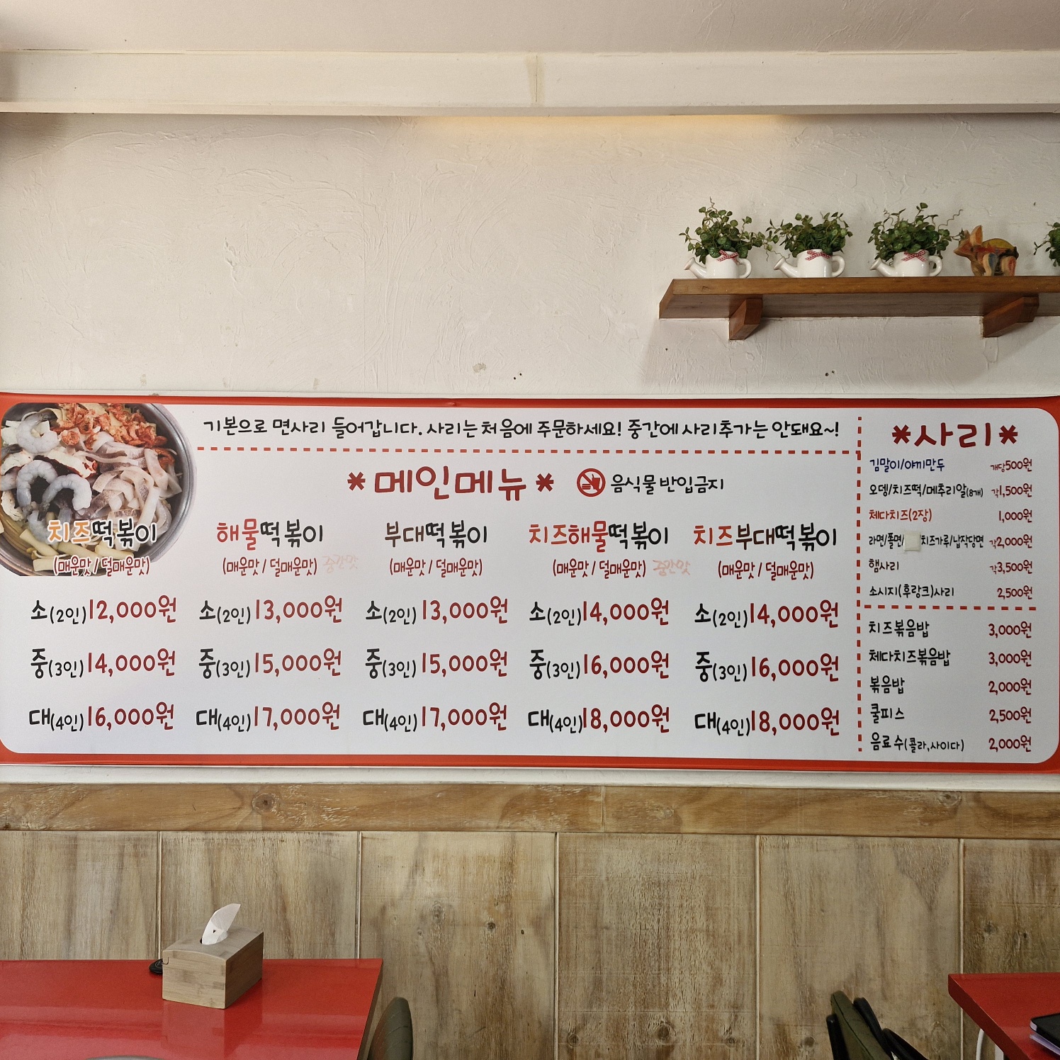 메뉴는 정말 다양해요. 기본적인 떡볶이 외에도 해물, 치즈, 그리고 다양한 야채가 들어간 메뉴들이 많아요.